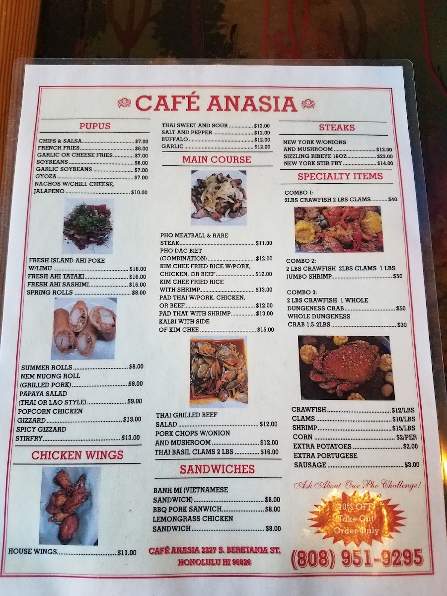 Cafe Anasia Menu